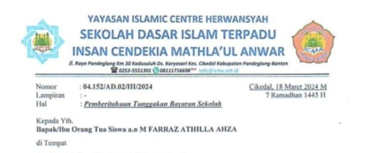 Aneh Tersemat Nama MA, Tapi PD Mathla'ul Anwar Menyatakan Bahwa SDIT ICMA Tidak Terafiliasi