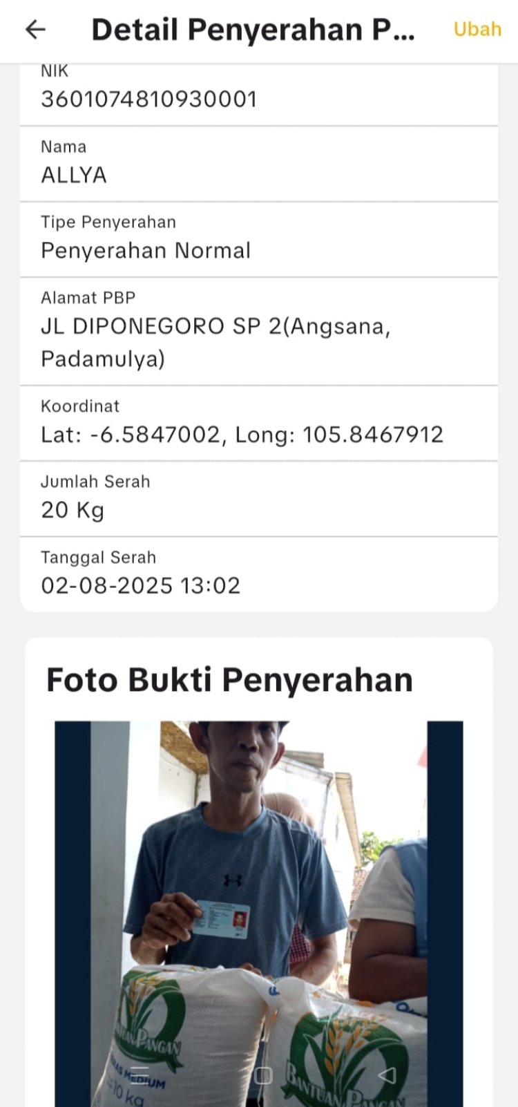 Salah satunya atas nama Allya dengan alamat Jl. Diponorogo SP 2 (Angsana Padamulya) dengan Nomor Induk Kependudukan (NIK) 36010748 10930001. Bantuan beras tersebut diduga kuat diambil oleh Darma, selaku RW yang beralamat di Kampung Cilampung.