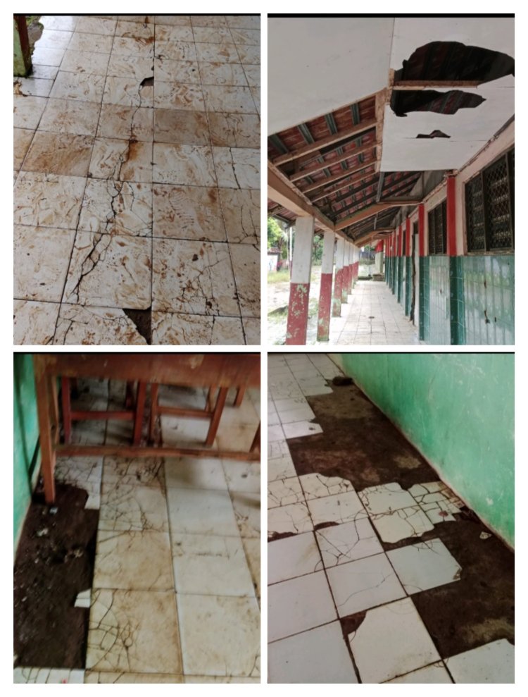 Ketika awak media datang kelokasi sekolah terlihat jelas banyak sekali kerusakan kerusakan dari atap plapon yang bolong-bolong,keramik yang pecah,cat gedung tembok yang kusam dan lain-lain yang disinyalir hal tersebut masih sangat tertanggulangi dari dana BOS sekolah tersebut.