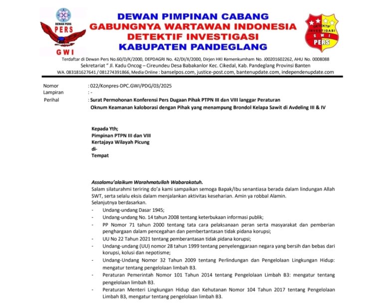 Terjadi Penyalahgunaan Wewenang Di PTPN III & VIII Kertajaya Picung, DPC DWI Kirimkan Surat Permohonan Konferensi Pers